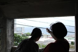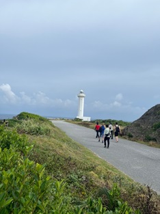 地下ダム資料館見学後、我々は東平安名崎を訪れました。東平安名崎は、宮古島の最東端にあり、海に突きだした長さ約2km、幅200mほどの岬で、日本都市公園百景のひとつにも選ばれています。学生の多くが、岬の先にある灯台に登ったのですが、台風の影響からとても風が強く吹いていました。