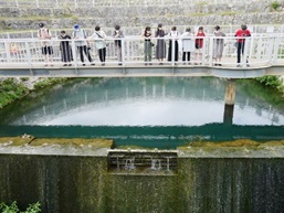 佐良浜地区の次に我々は地下ダム資料館への見学に向かいました。地下ダムとは、宮古島の地下にある水源を海に流失させずに堰き止め利用するために造られたもので世界でも珍しいダムの一つです。地下ダム資料館では、地下ダムの構造や、建設するための掘削機などが展示されていました。また、施設の外には実際の地下ダムをみることができる展示もありました。見学の中で、地下ダムが建設されてから宮古島の生活が劇的に変化したことが分かり、この地下ダムが現在の宮古島の生活を大きく支えていることが分かりました。