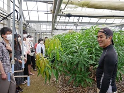 研修第3日の最後に、一日ガイドをしてくださった山田さんがご家族で経営されているマンゴー農園アグリファームの見学をさせて頂きました。農園では、マンゴーの作り方や特徴、アグリファームで行われている取り組みなどのお話を聞かせていただきました。また、見学後に冷凍マンゴー(収穫期は6月)をいただけたのですが、とても甘く美味しかったです。