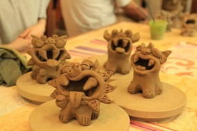 (真剣にシーサー作りをしている様子)