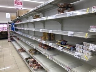 (台風の影響で品薄な陳列棚)