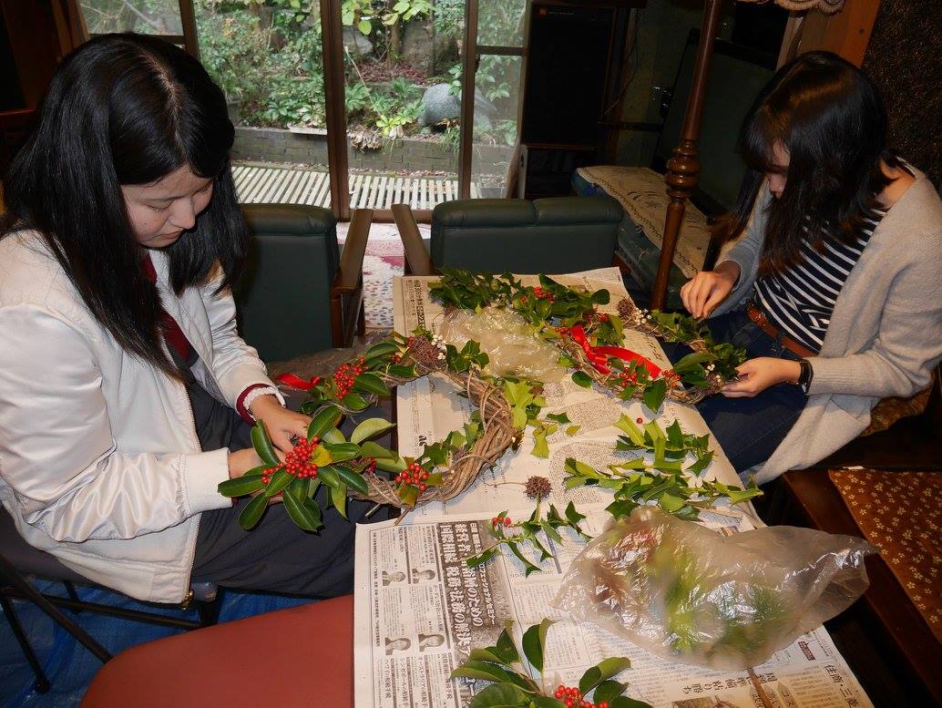 ゼミでお世話になっている「カフェ椿」さんでクリスマスリース作りを体験しました。