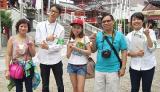 写真は、意気投合した台湾のご家族と学生が、その折り紙を手にし、撮影したものです。
