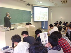 実務の観点からの地域開発に関する理解を深めるために、元・国連地域開発センター(現・一般財団法人日本国際協力センター)の高井克明さんに、開発途上国の地域開発のあり方について、「人間の安全保障」と「内発的地域開発」をキーワードに、ネパールのタンセン市の事例に基づく練習問題を交えながらお話しいただきました。