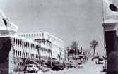 開学当時の旧正門(現在の西門)と旧6号館(1956年撮影) |