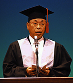 この後、新入生を代表して、午前の部では文学部の長谷川七星さんが「私は今年度から新たに設置された歴史文化学科に所属します。国際社会の中で、日本人としてのプライドを持って活躍していくためには、日本の歴史文化に立脚し、『世界の中の日本』という幅広い視野を持ち、深い専門性と柔軟な国際感覚を養いたい」と力強く宣誓。