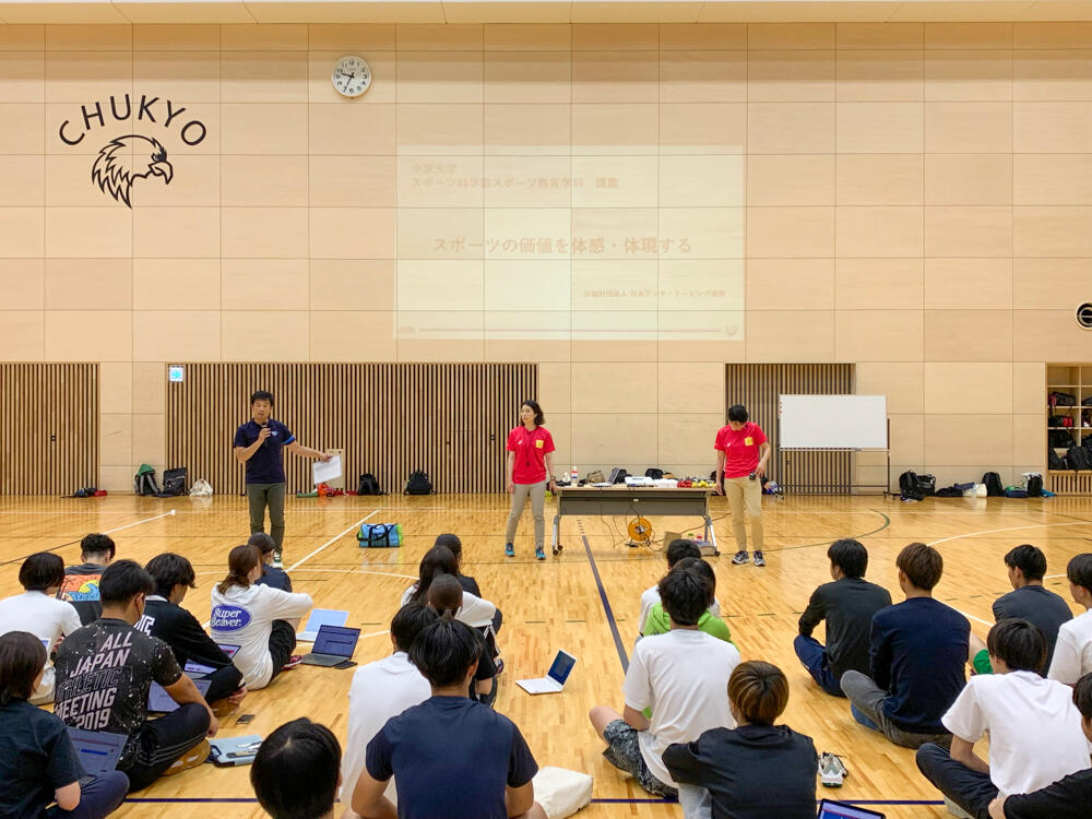 スポーツ科学部が開講している「スポーツ教育学(担当教員:後藤晃伸准教授)」は6月8日、公益財団法人日本アンチ・ドーピング機構(以下、JADA)と共に、JADAが考案した「New MO!」というスポーツの価値を自身で創ることを体験・体感し、体現していく可能性を考えるアクティビティを実施しました。本講義は、JADAが推進する「スポーツの価値を基盤とした教育」の一環として、今後スポーツや体育の推進に関わる学生たちが、NewMo!を通してどのような教育やプログラム展開を考えられるか、ということを協働して実施しました。