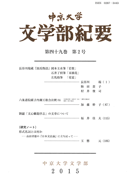 • 文学部紀要 第49巻第2号(通巻第134号)