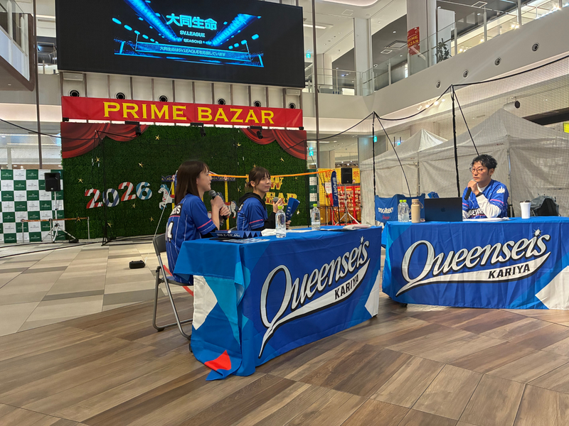 実際にイベントを開催すると、バレーボール体験を楽しむお子さまや、偶然立ち寄った方が一緒に応援してくださる場面も多く見られ、私たちの企画が多くの人に喜ばれていることを実感しました。自分たちのアイデアが形となり、地域の方々にクインシーズ刈谷の魅力を伝え、ファンづくりに貢献できたことは大きなやりがいとなりました。
