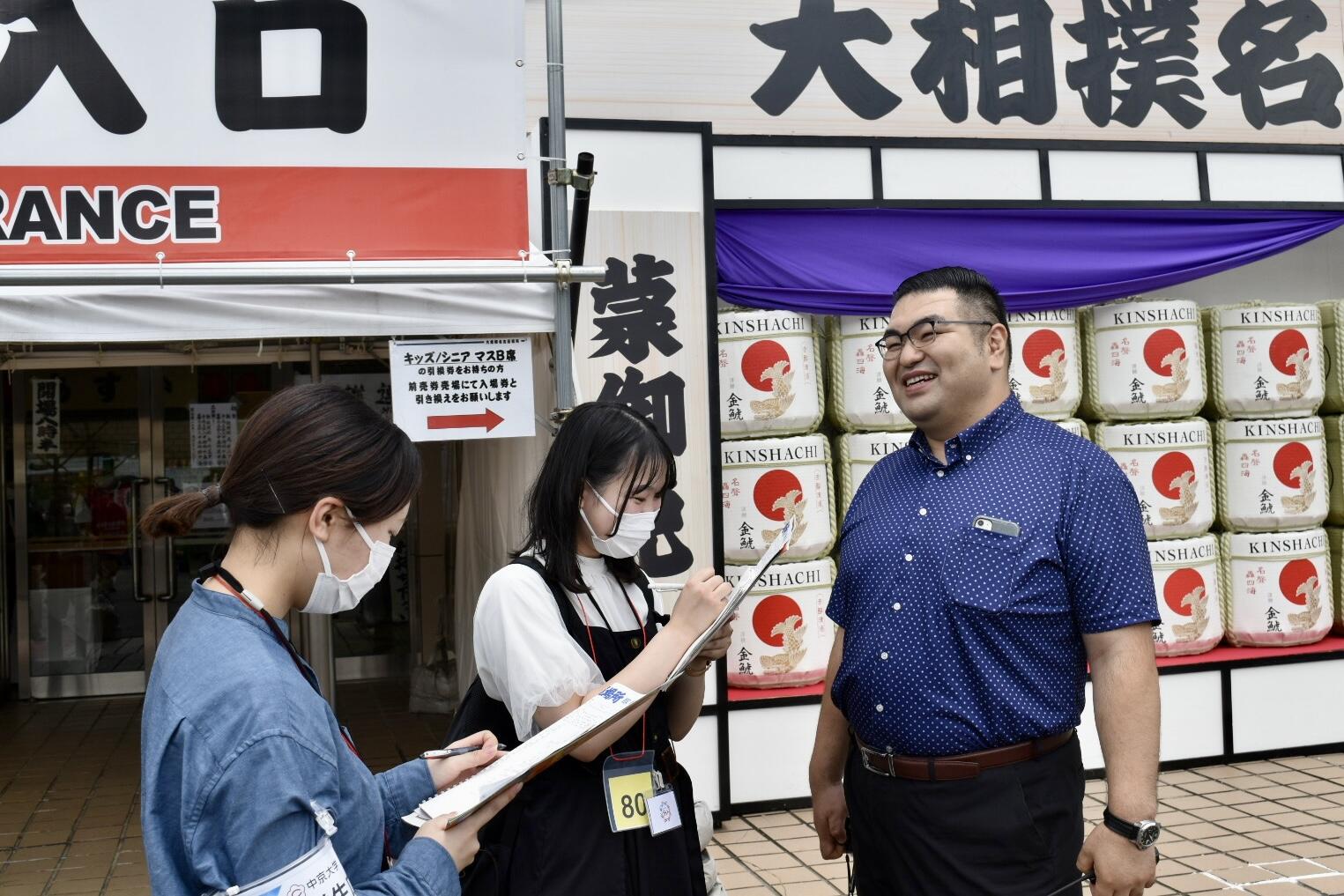 7月14日からドルフィンズアリーナで開催されている大相撲名古屋場所。7日目となる7月20日、学生広報スタッフ「ライト」の5名が、力士や親方に取材しました。
