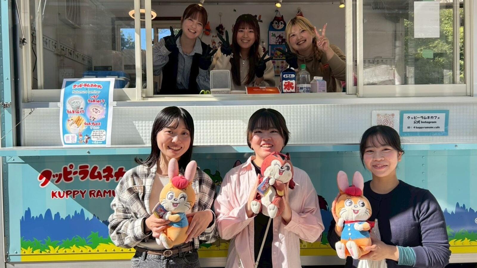 経営学部の中村雅章ゼミに所属する学生7人は10月23日、中京大学名古屋キャンパスにて、キッチンカーによる「クッピ―ラムネカフェ」を出店しました。当初は22日、23日の2日間の出店を予定していましたが、22日は天候不良のため中止となり、23日のみの販売となりました。