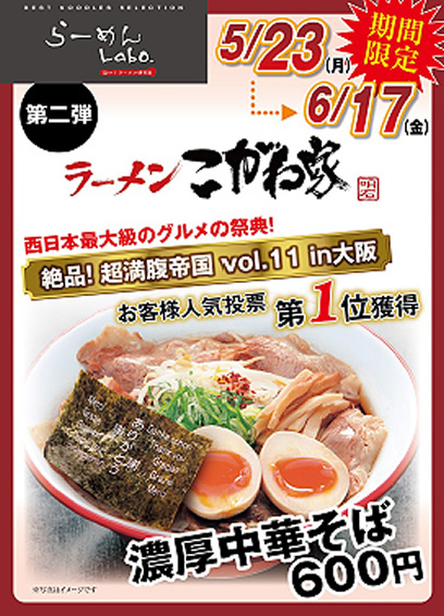 5月下旬から6月の中旬には期間限定で兵庫県 明石市発の濃厚中華そばこがね家が出店しました。